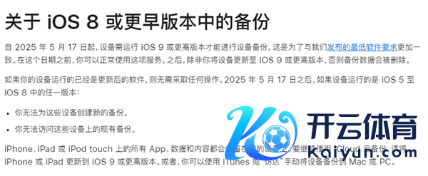 快科技11月19日音问,官方告示,自2025年5月17日起,树立需开动iOS 9或更高版块智商进行树立备份。