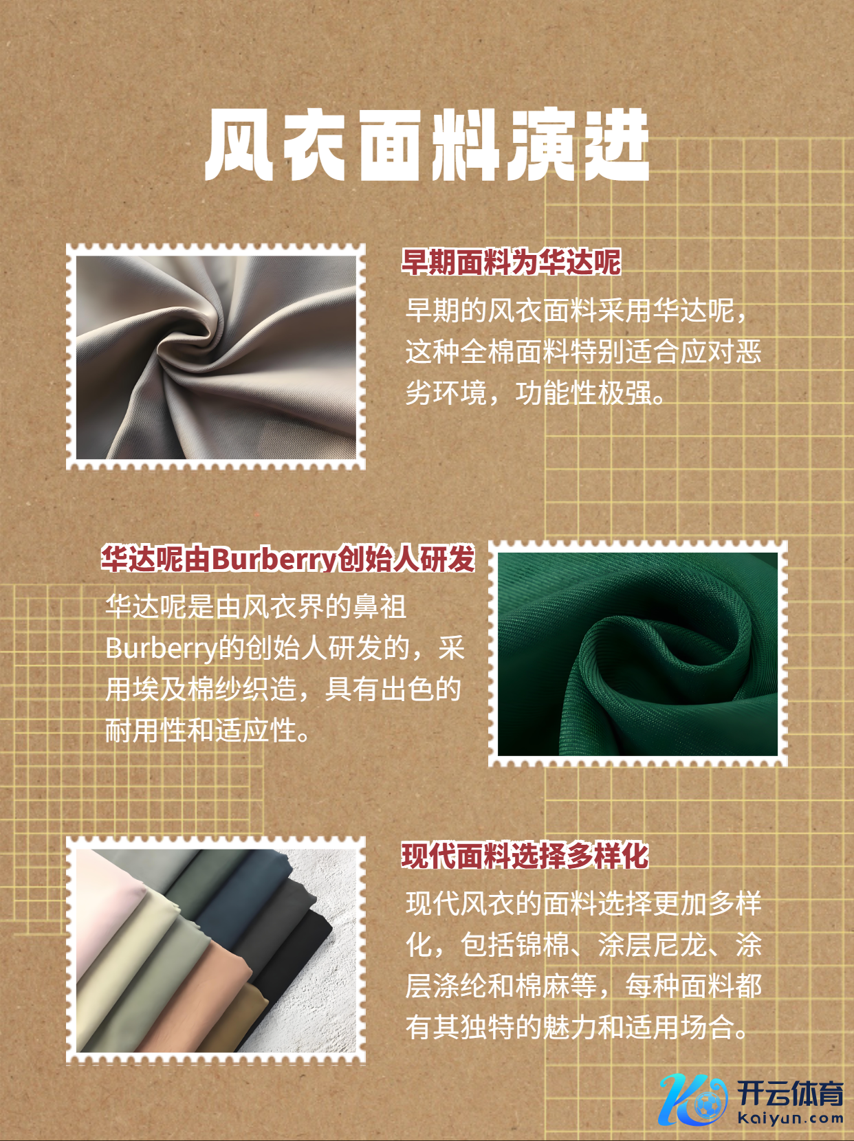 🌈【面料演进】 早期的风衣面料,是一种叫作念华达呢(Gabardine)的全棉面料,由风衣界的始祖Burberry的首创东谈主研发。这种面料罗致埃及棉纱织造,零星妥当应答恶劣的环境,功能性饱和!🌟🌱