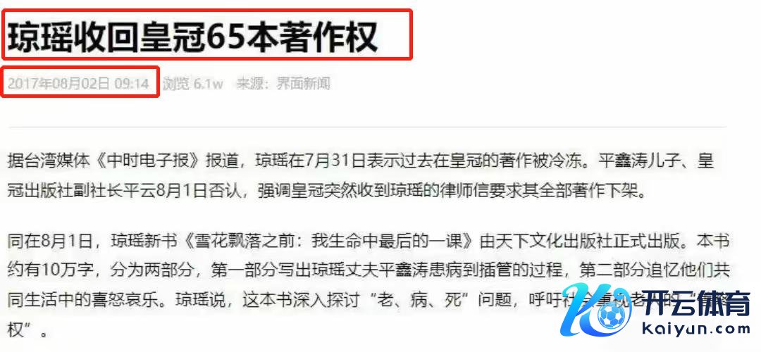 2017年,琼瑶条件收回王冠我方65本书的版权。