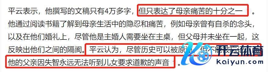 而在宣传这本书时,平云更是直言:这本书只写出了我母亲灾祸的相配之一。