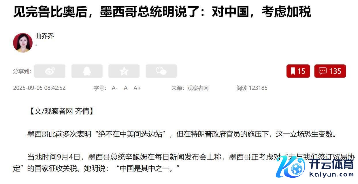 墨西哥总统府网站贴出的毛糙声明唯有三行字:正在评估对中国等家具追加关税,时分表写入2026年预算案。音问一出,墨西哥城里作念汽车配件的华商微信群平直炸了,有东谈主甩出一张海关税单截图,上头写着“中国原产变速箱,现行税率15%,拟调30%”,背面跟了仨惊羡号。音问东谈主士暴露,这份提案领先来自好意思国生意代表办公室递到墨西哥经济部的一封加密邮件,题名日历比辛鲍姆言语早整整一周,里面列了92种商品编号,汽车、钢铁、纺织占了前三大类,全是昔日五年中国对墨出口增量最快的板块。